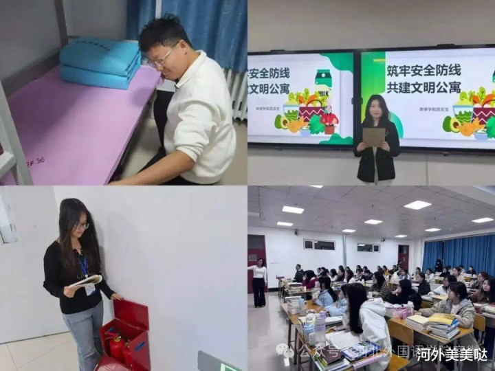 安全是学校一切业绩发展的基石,是师生成长成才的底线。为深化落实学校吉利校园设立使命条目,切实筑牢全主见、立体化的校园安全樊篱,河北番邦语学院以 “防护为主、防治沟通、牵累到东谈主、皆捏共管” 为原则,在全校界限内统筹开展系列安全栽种主题步履。各学院积极反应学校敕令,全心筹办、多点发力,以千里浸式、多元化体式将安全理念融入学生辰常,全力看守全院师生吉利。