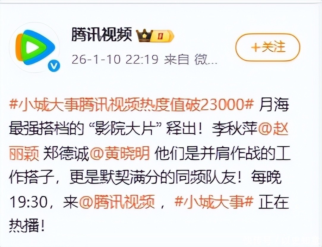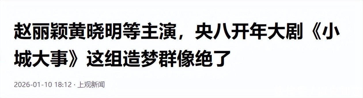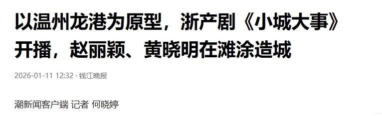 部分参考贵寓:赵丽颖黄晓明等主演,央八开年大剧《小城大事》这组造梦群像绝了 - 上不雅新闻以温州龙港为原型,浙产剧《小城大事》开播,赵丽颖、黄晓明在滩涂造城 - 钱江晚报小城大事腾讯视频热度值破23000 - 腾讯视频为了脚色十几天瘦了十几斤 - 腾讯视频