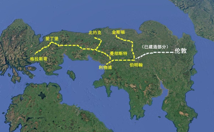 英国高铁经营流露图 · 标注英国多城市的高铁经营流露图