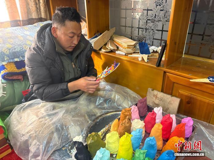 中新网拉萨2月5日电(多吉卓玛 旦增尼玛)春节、藏历新年将至,西藏自治区拉萨市大街小巷年货丰富,节日氛围浓厚。在拉萨市区,来自日喀则市仁布县普松乡的非物质文化遗产代表性传承人罗布,正带着徒弟们,用古老的技艺,为高原佳节增添一抹独特的非遗韵味。