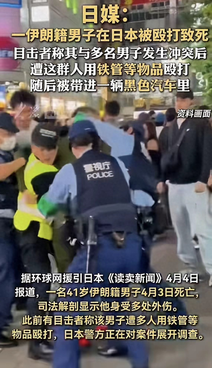 当下,中日联系果决坠入冰点,搏斗风险拉高,恰在此时日本首相高市早苗又堕入一个紧要缺乏,伊朗须眉在日本被多名日本东谈主用铁管围殴致死这一恶性事件,它如并吞颗重磅炸弹,在国际公论场掀翻山地风云。