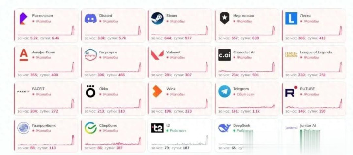 当晚,俄罗斯约30个城市的用户反应,其Rostelecom家庭互联网事业出现绝顶。包括游戏平台Steam、政府事业宗派Gosuslugi、视频平台Rutube以及多项银行事业在内的主要在线事业均一度无法拜谒。