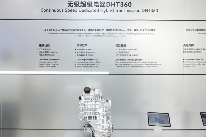 其中展示的具体手艺效果包括:全国首个整车级48V低压平台、热着力达48.57%的鲲鹏天擎发动机、行业首款全速域磁通可调驱动电机DHT360,以及猎鹰驾辅900 Robocar等。