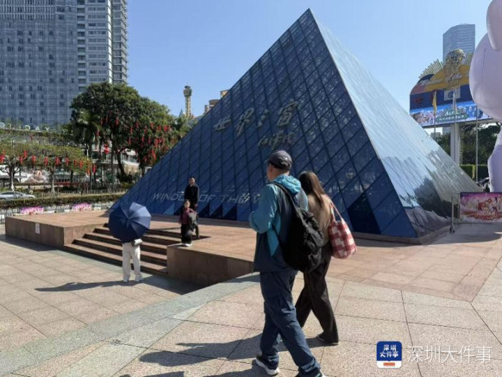 走出园区,在玻璃金字塔处,记者偶遇了正在拍照的张先生一滑,来深圳打拼近30年的他,见证了世界之窗“出说念即巅峰”的高光时期。“亲戚来深圳玩,买了第二天回老家的高铁票,今天趁多出来的一天时辰带他们来这转转”,他本以为仅仅重游闾里,没料想却是一场“步步惊艳”的新旅程。