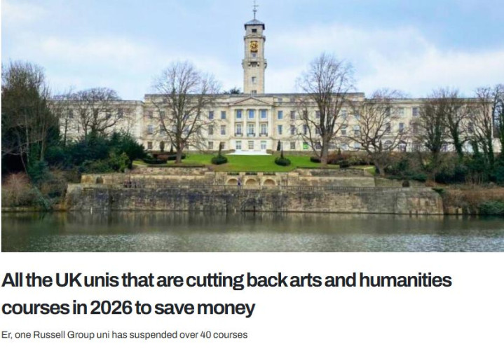 2026年以来,诺丁汉大学也曾暂停了40余门专科的招生,其中就包括好意思国与加拿大商讨、当代话语学等传统东说念主体裁科;布里斯托大学更是为东说念主体裁院和当代话语系推出了自发下野盘算推算,条目当代话语学院在8月前从简100万英镑,变相缩减文科规模。