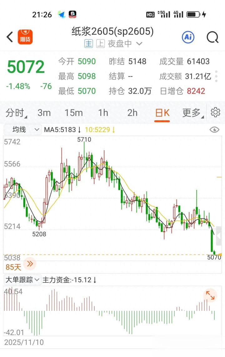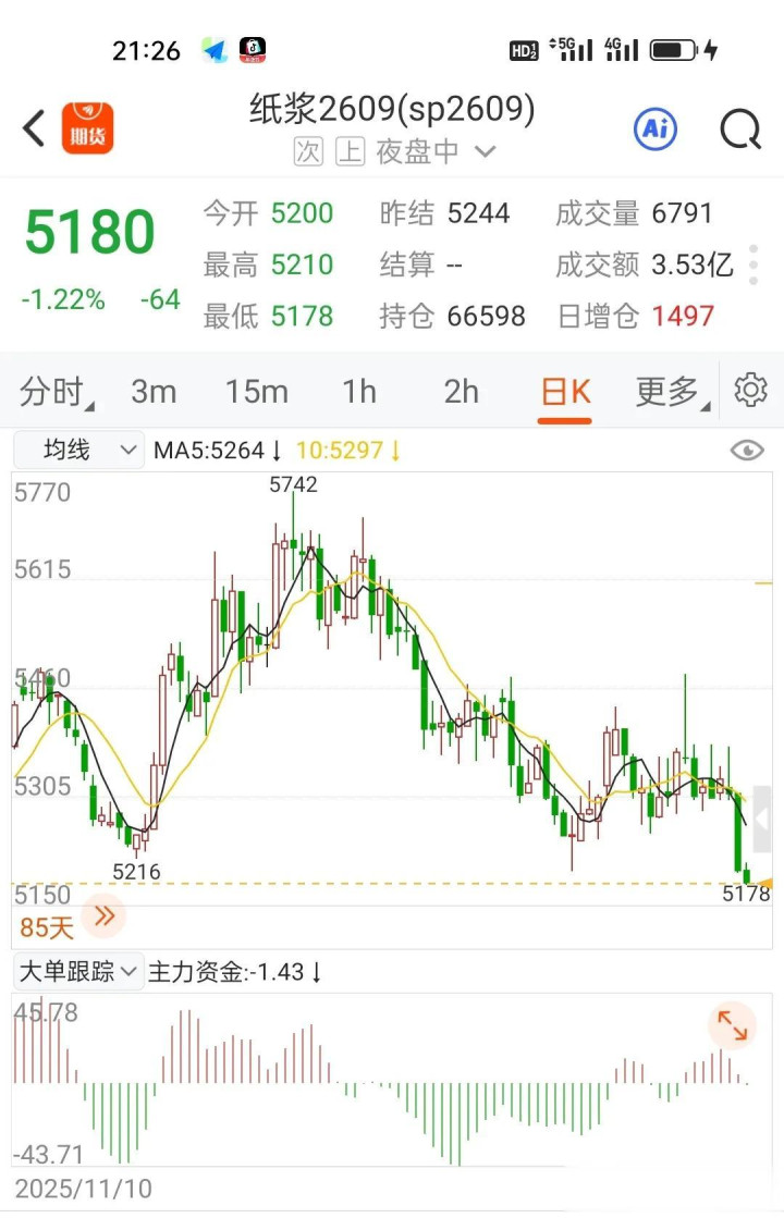 星空app下载 期货纸浆盘中一字销魂刀致命一击, 跌破多年前低位重触5072